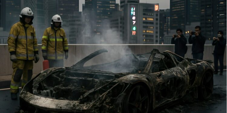 While driving along Tokyo’s busy Shuto Expressway, Honkon noticed something strange: white smoke started billowing out from under the hood. At first, he thought it was coming from the car next to him, but when that vehicle pulled away, it became clear the smoke was coming from his Ferrari. Without wasting time, Honkon pulled over, quickly exited the car, and called the fire department. Over the next 20 minutes, he watched in disbelief as flames completely consumed his dream car. By the time firefighters finally brought the blaze under control, only a small part of the front bumper remained intact. The rest? Ashes.